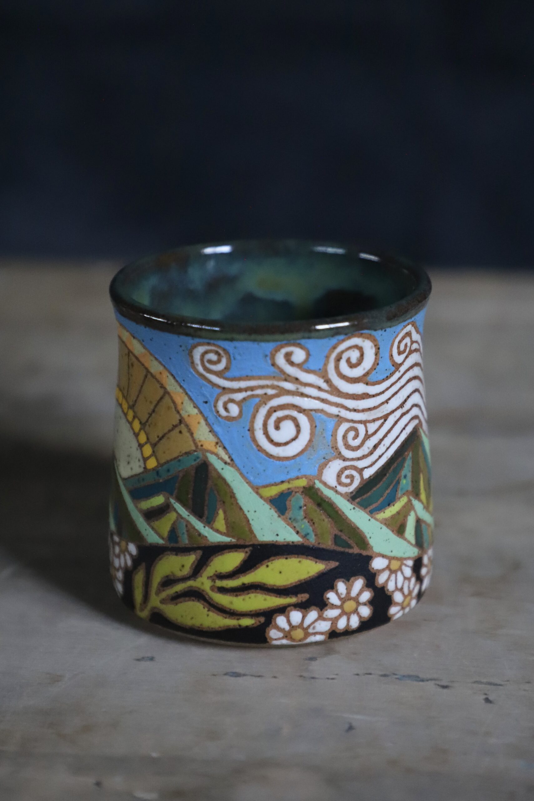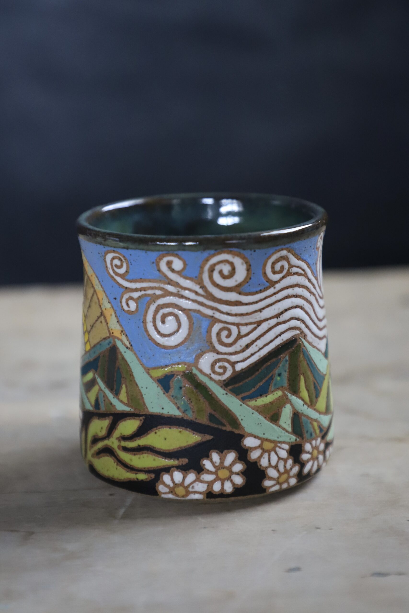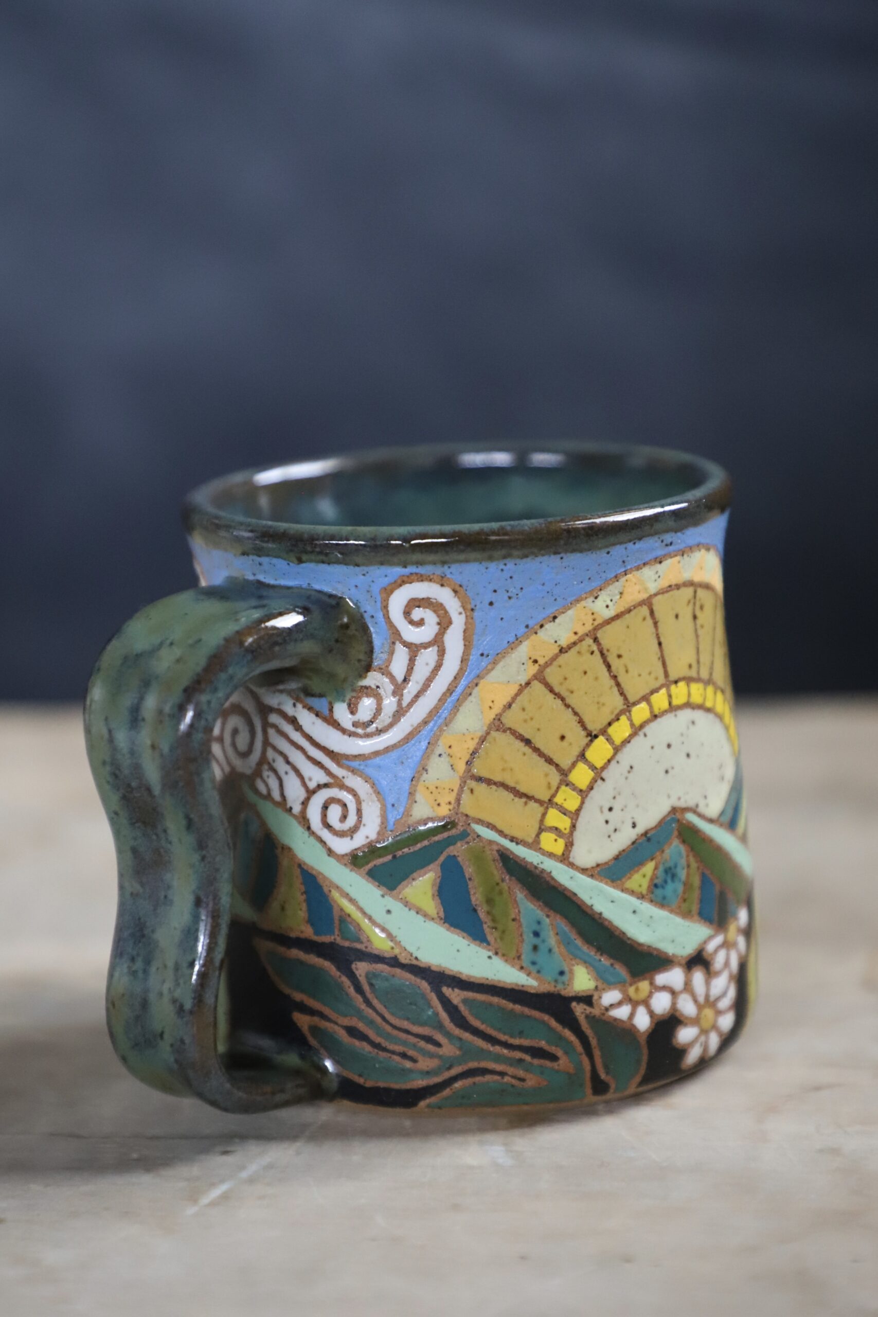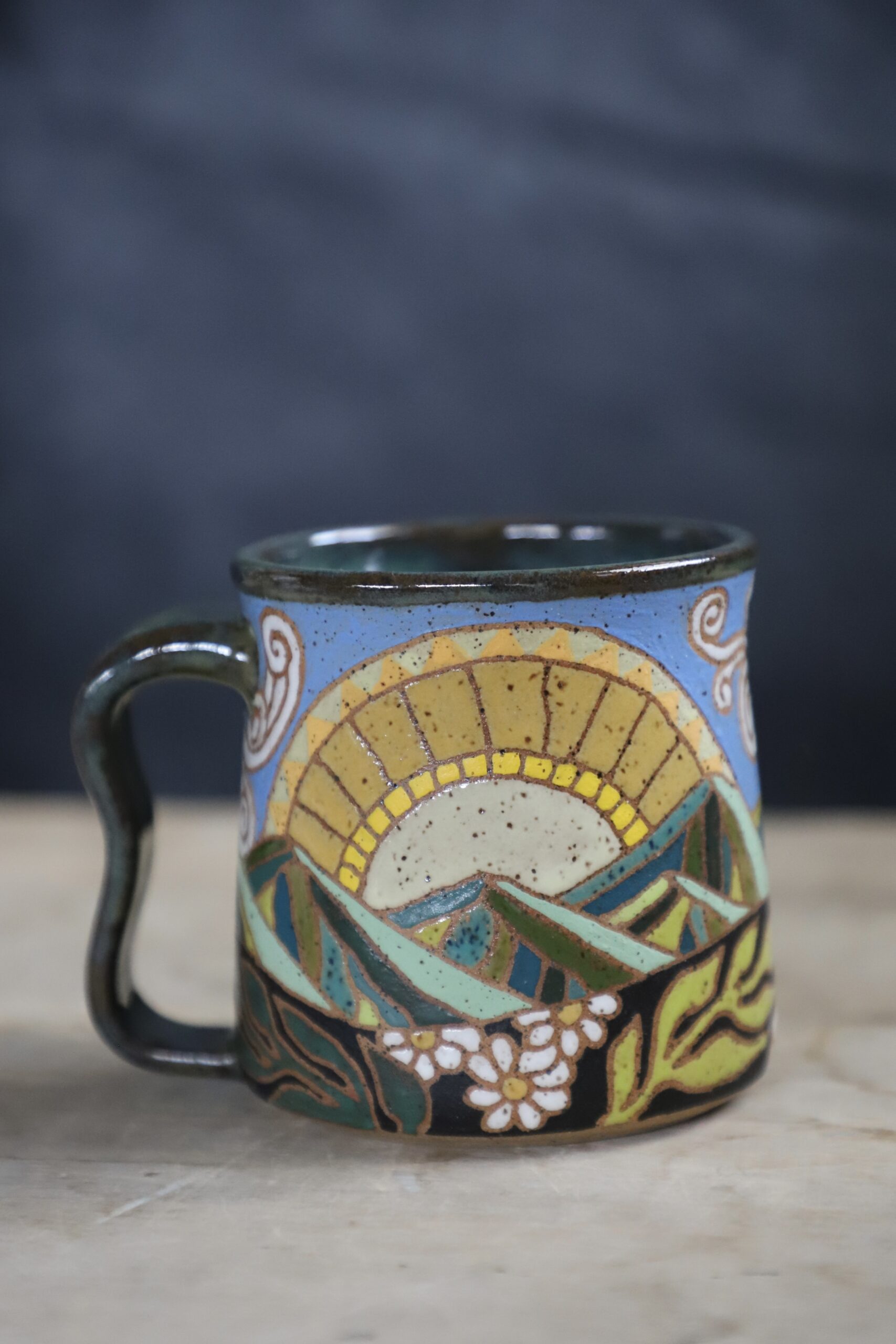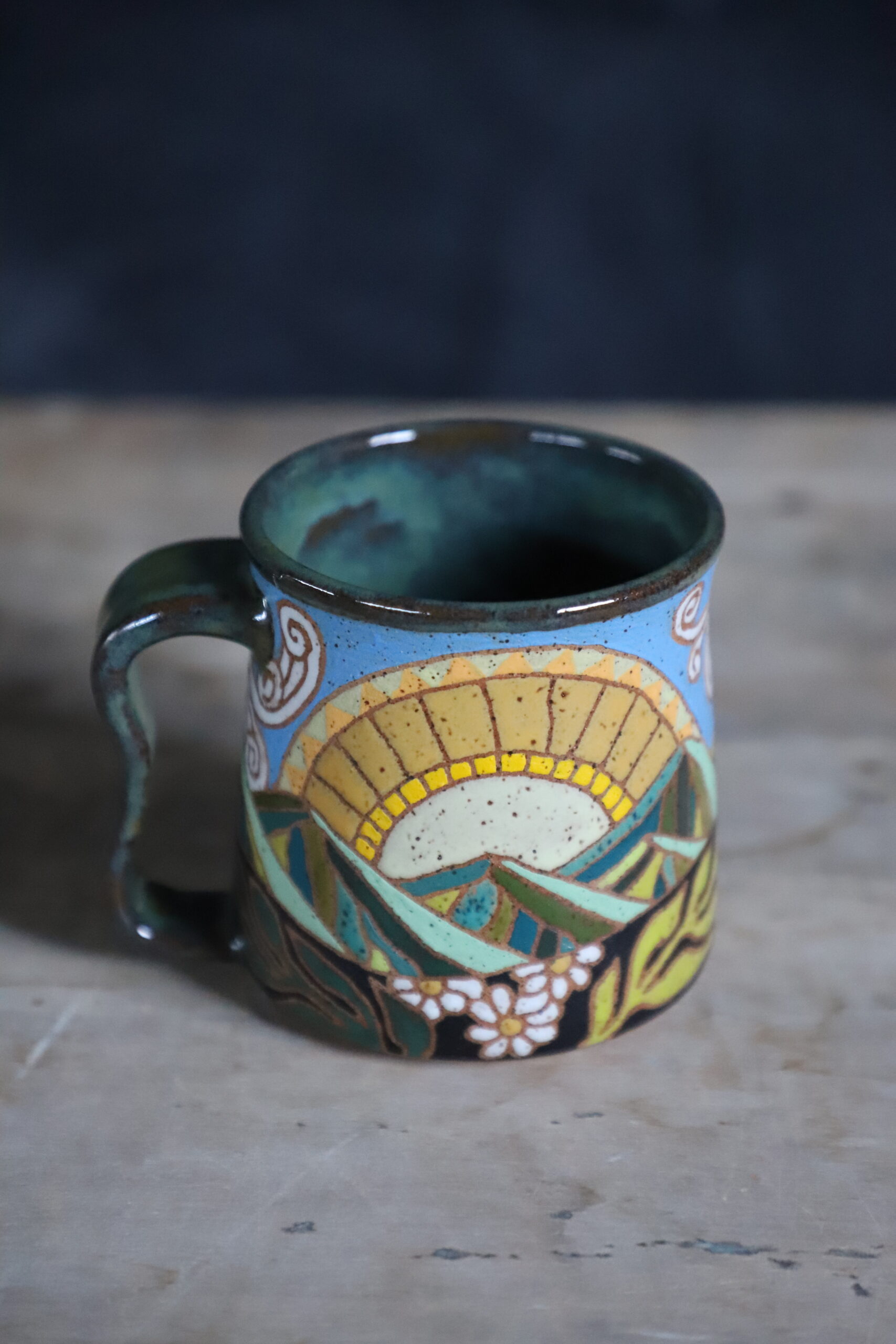 Mandala mug holds 16oz. From my heART to you, made with joyful hands. Top rack dishwasher & microwave safe. As with any handmade item handwashing is best to ensure longevity.