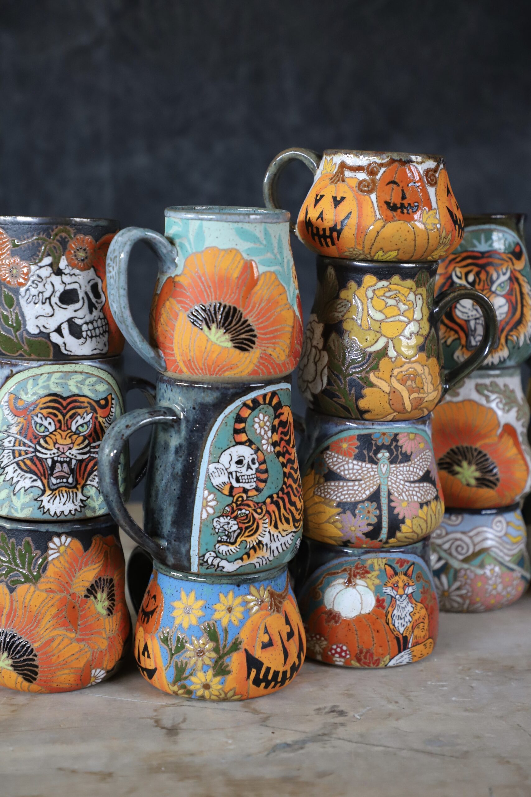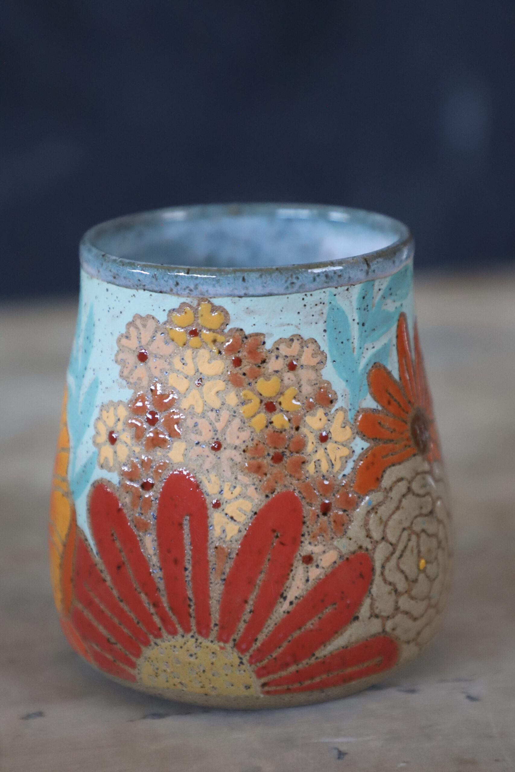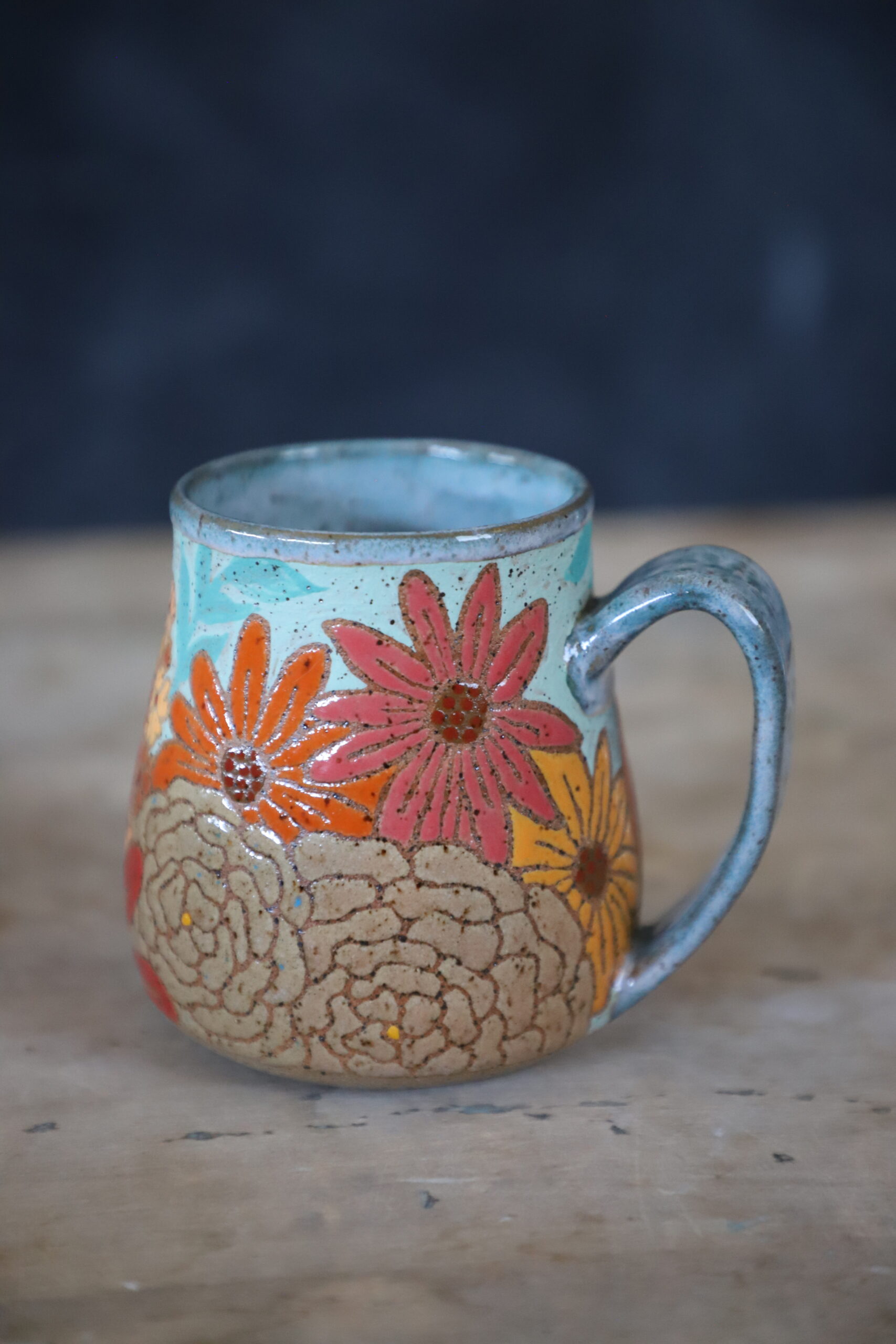 Poppy & wildflower mug holds 15oz. Made by joyful hands with love. With all handmade goods handwashing is best. Top rack dishwasher and microwave safe.