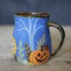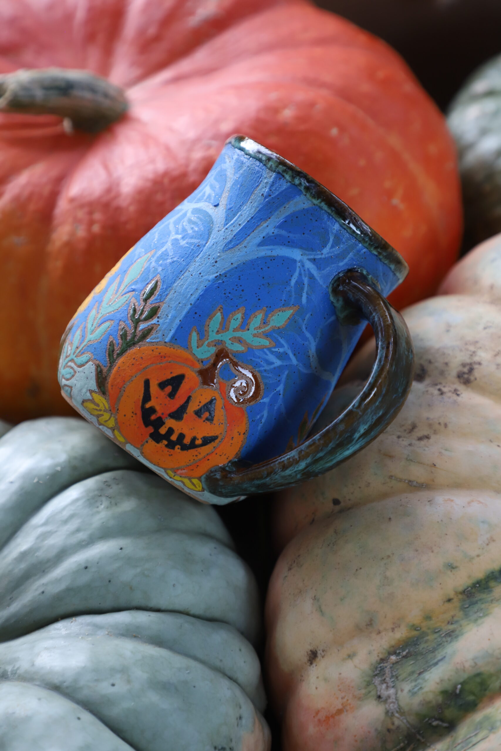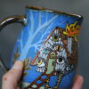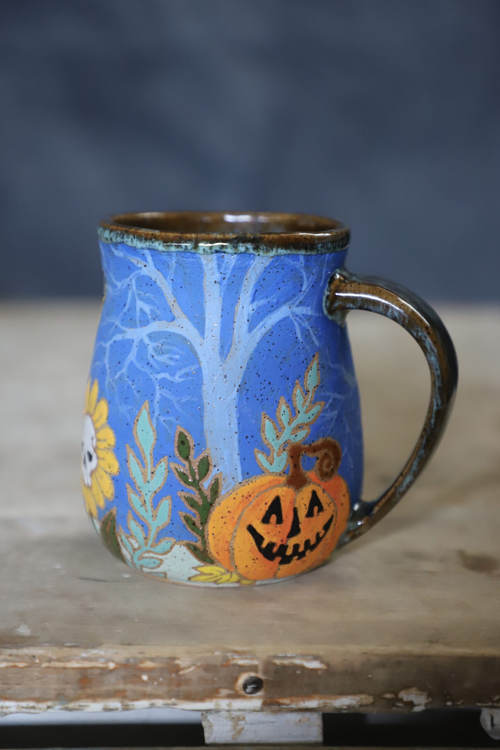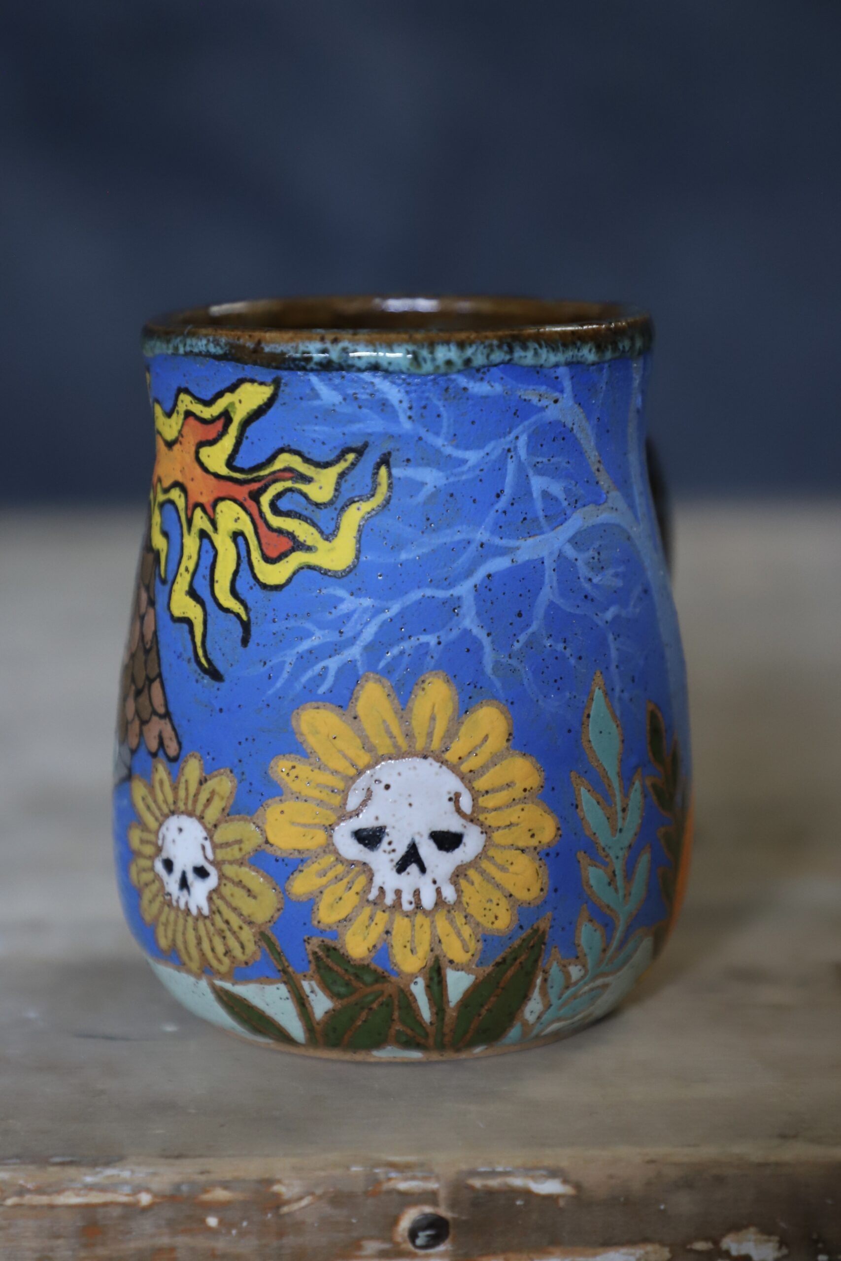 Watchful Baba mug holds 18.5oz. Microwave and top rack dishwasher safe. Handwashing is always best for the longevity of handmade.