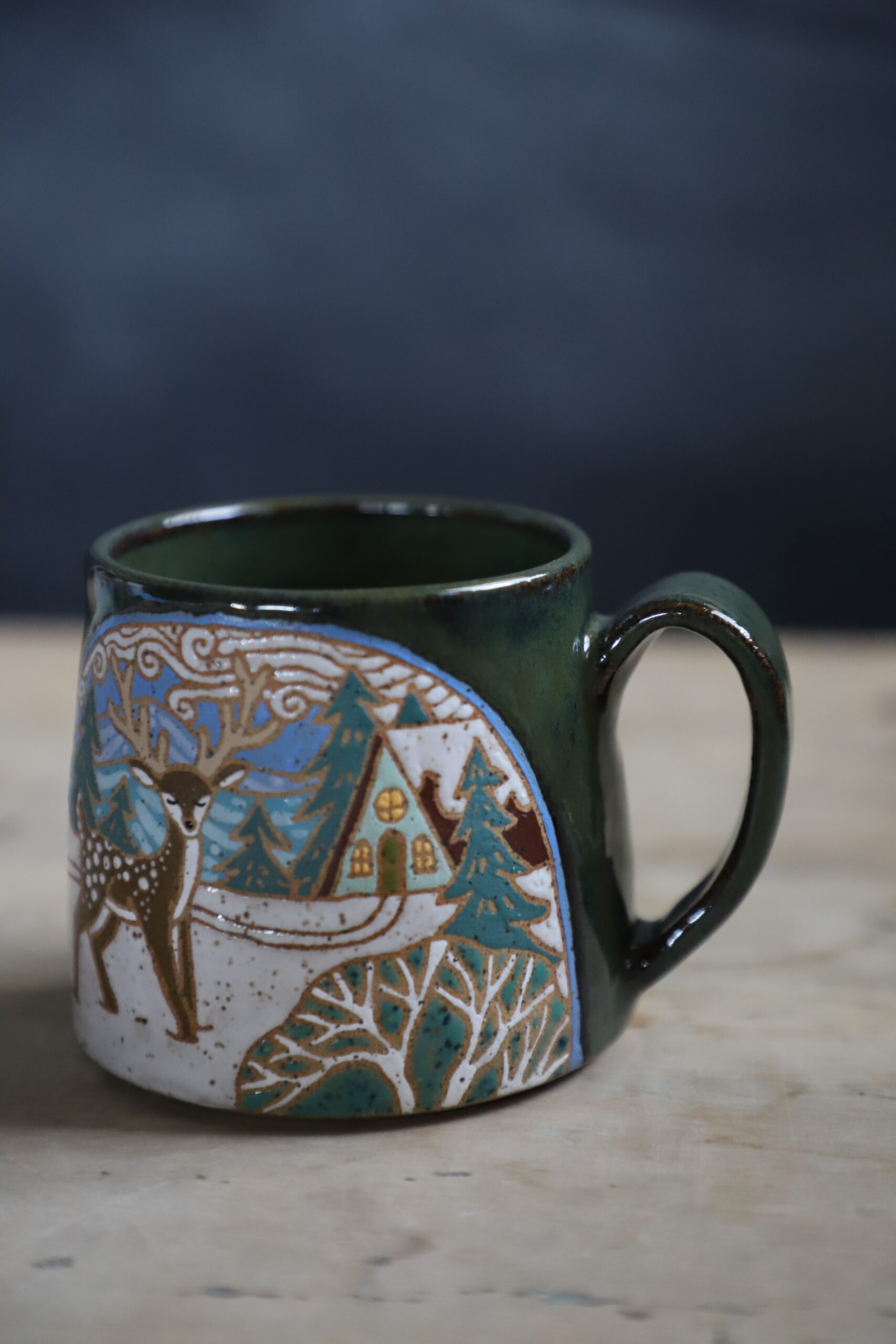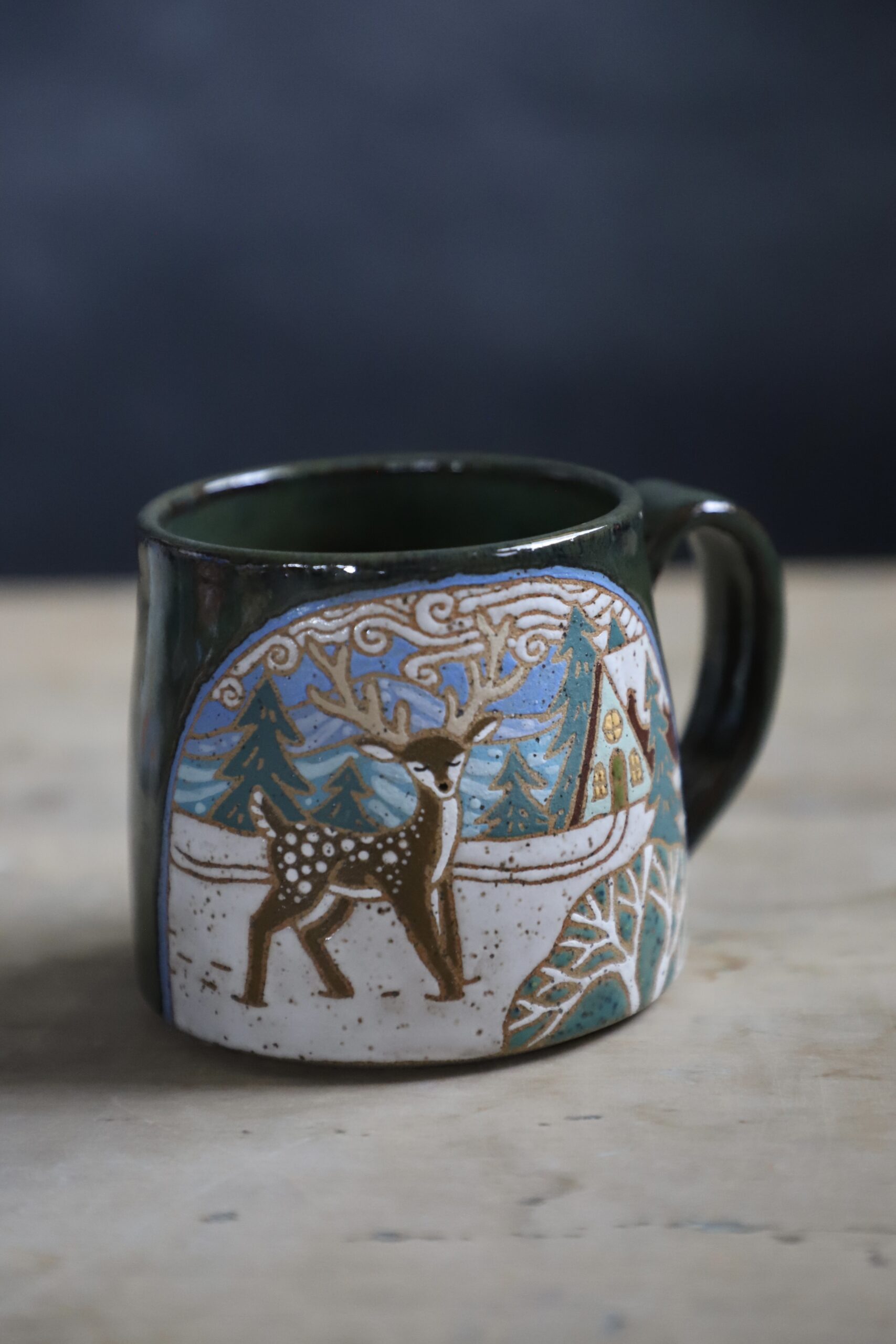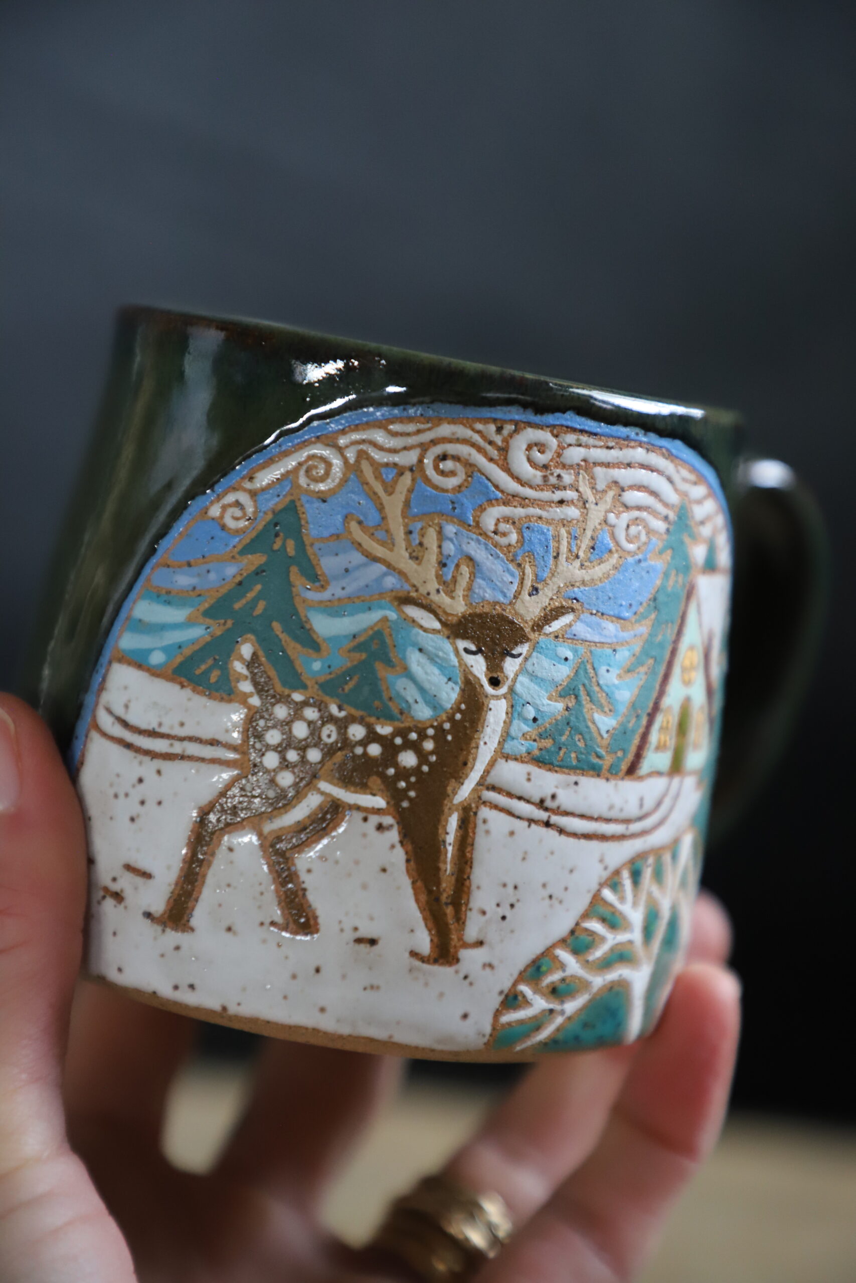 Deer mug holds 15oz. From my heART to you, made with joyful hands. Top rack dishwasher & microwave safe. As with any handmade item handwashing is best to ensure longevity.