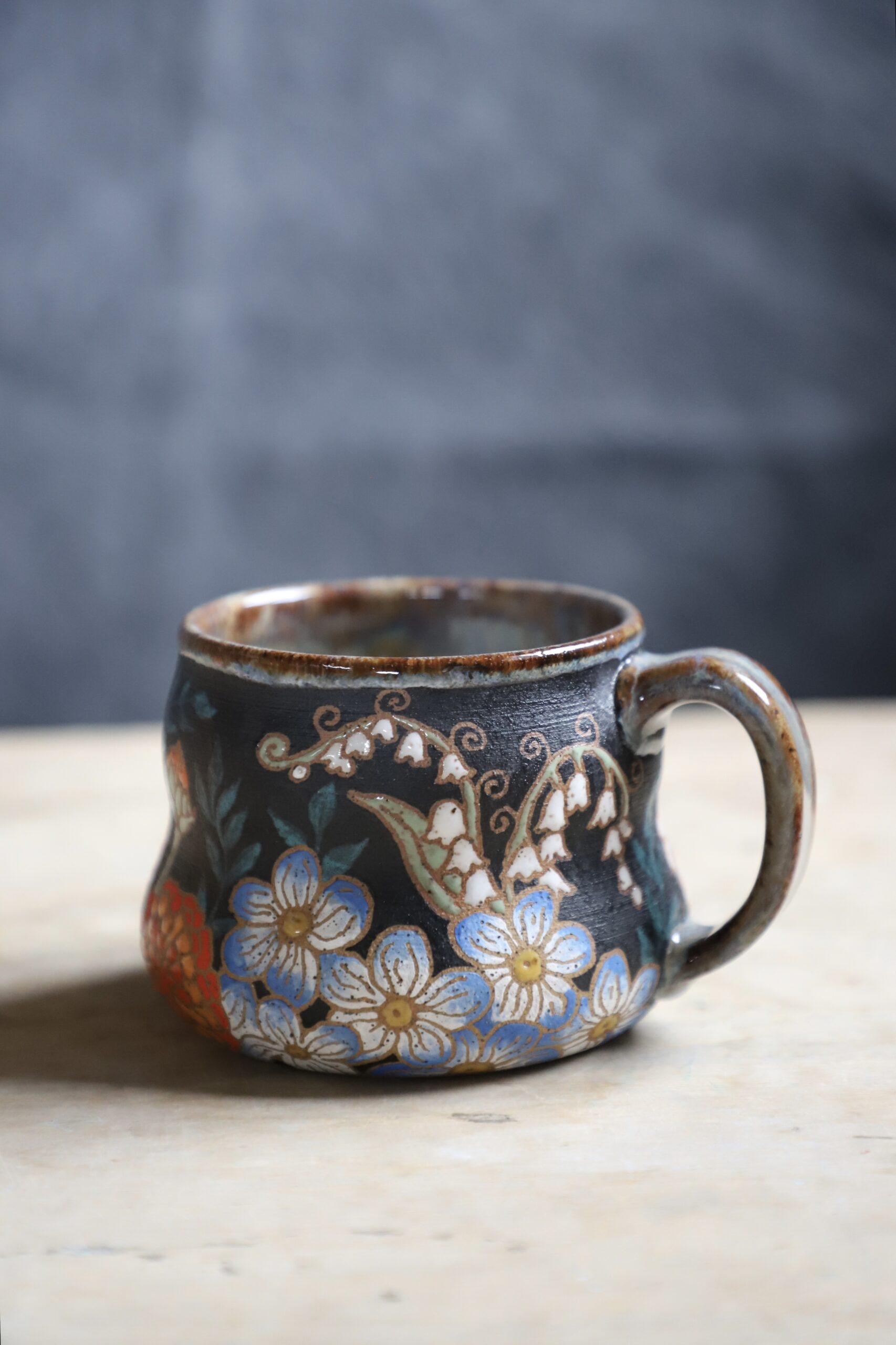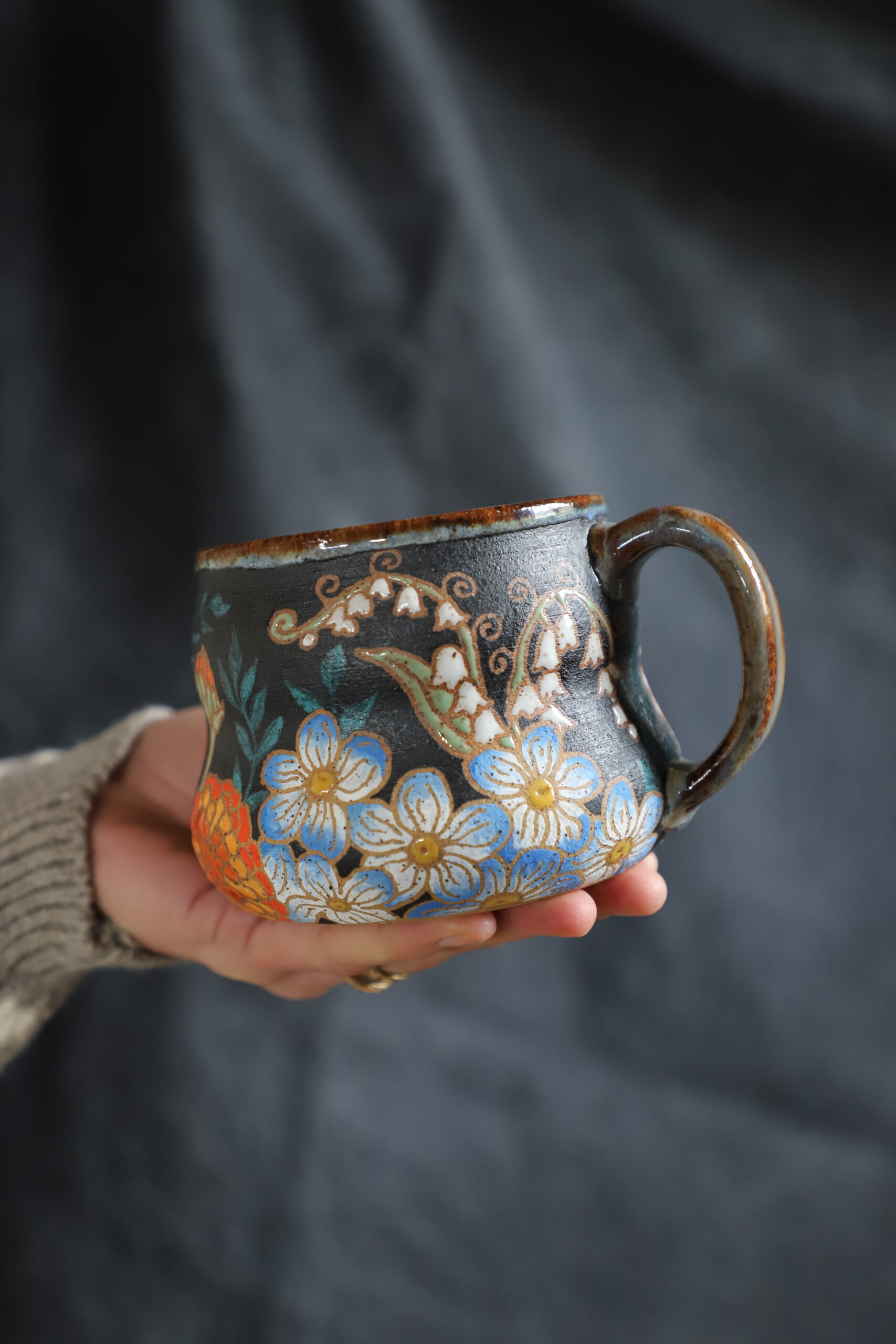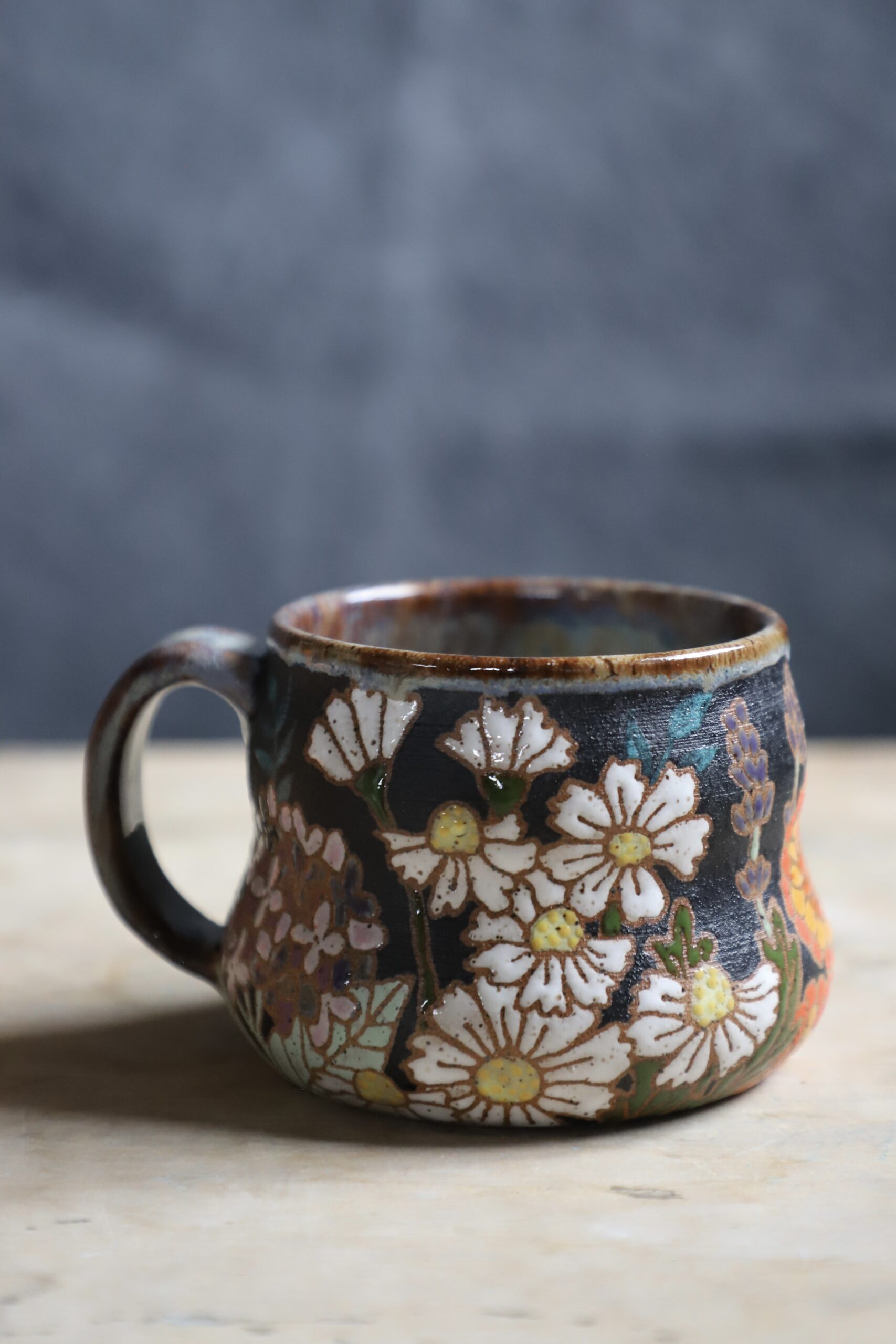 Zinnia mug holds 18oz. Handmade with love with joyful hands. Microwave & dishwasher safe. Although handwashing is best for the longevity of handmade pieces.