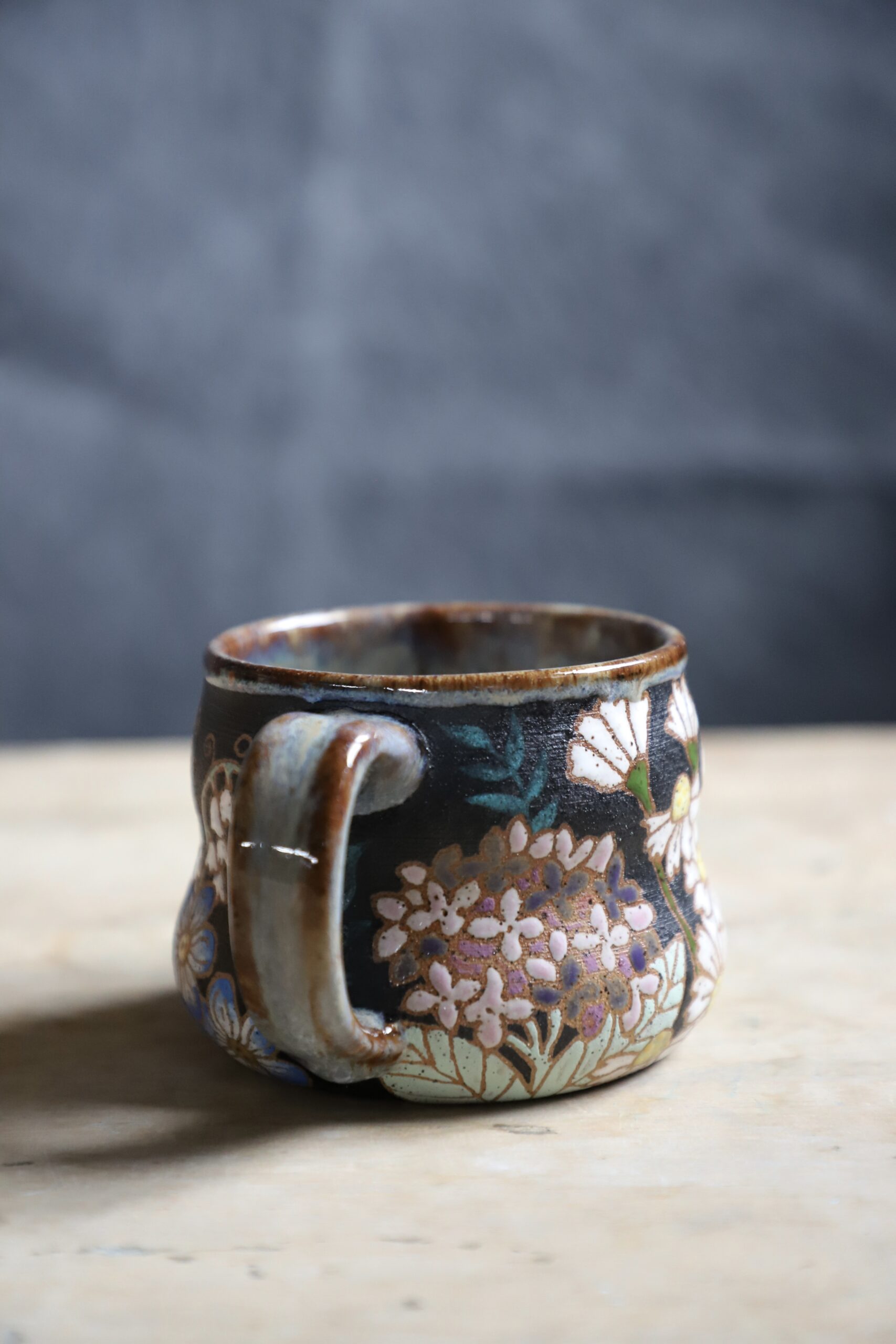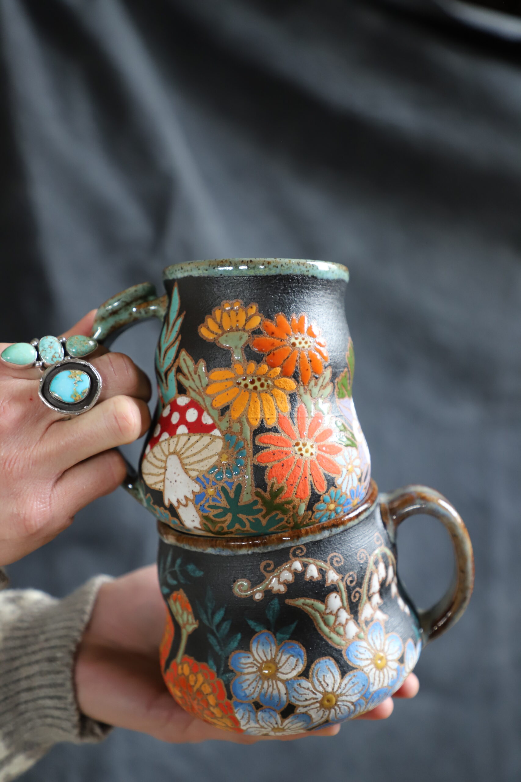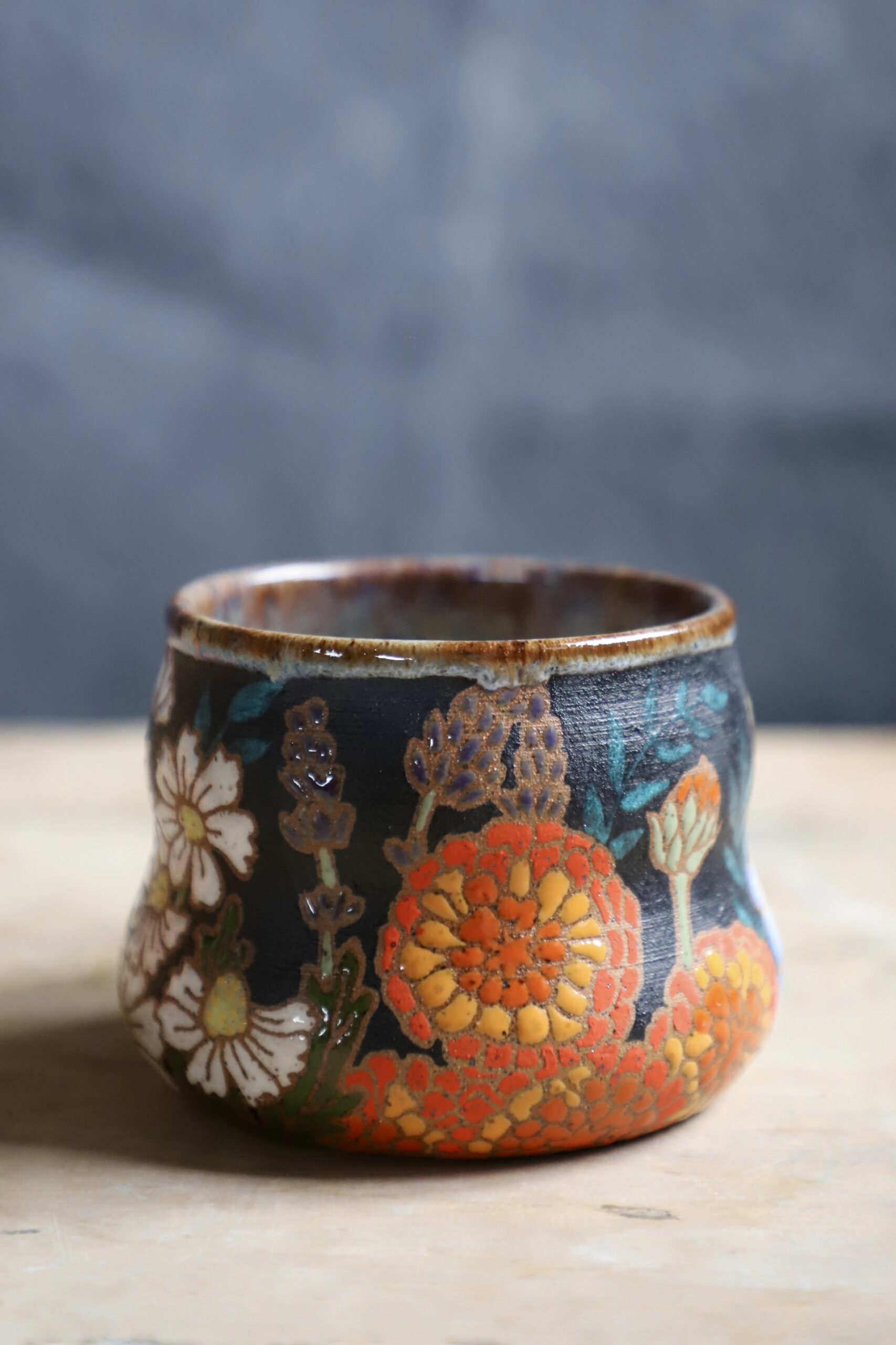 Zinnia mug holds 18oz. Handmade with love with joyful hands. Microwave & dishwasher safe. Although handwashing is best for the longevity of handmade pieces.